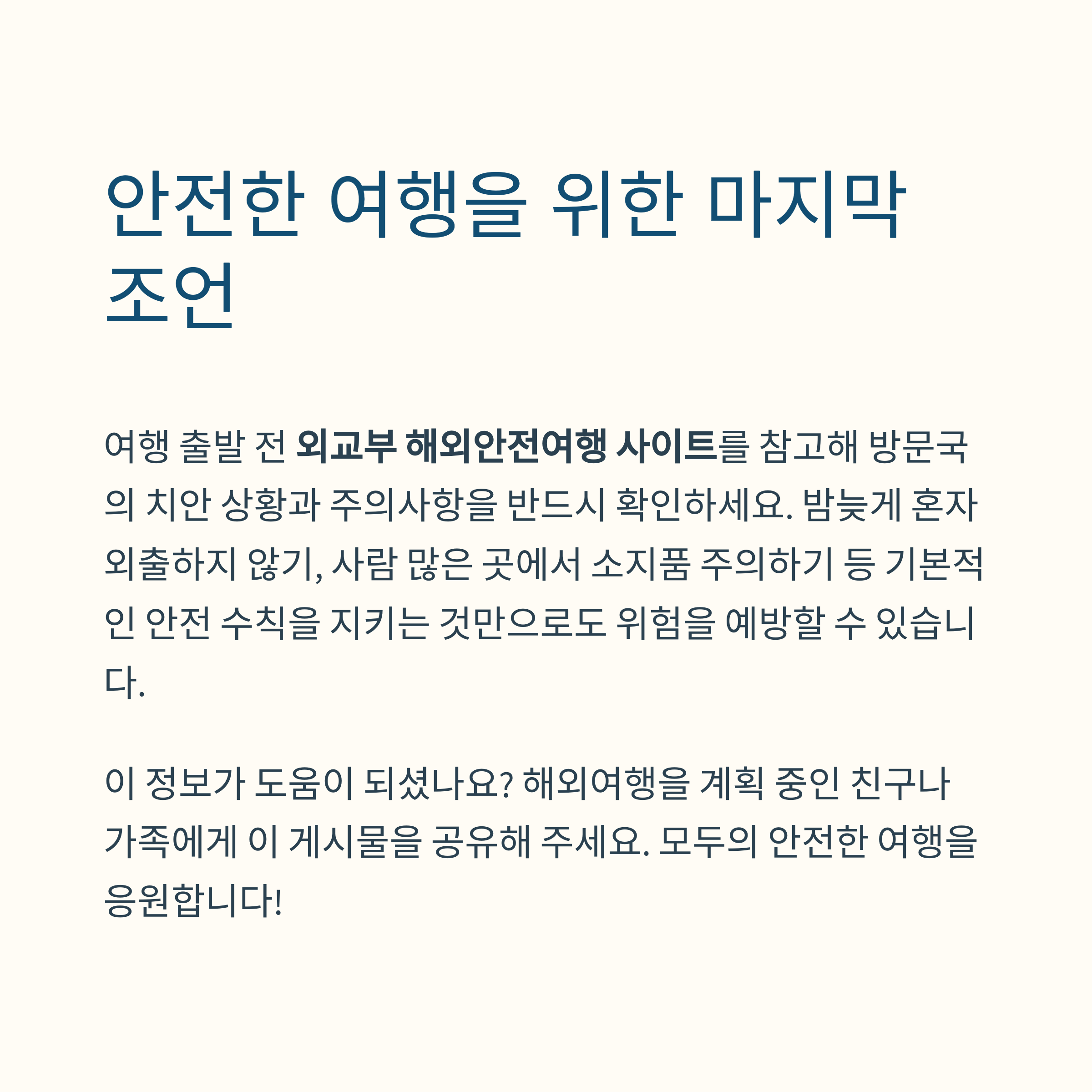 방문국의 치안 상황과 주의사항을 반드시 확인하세요.