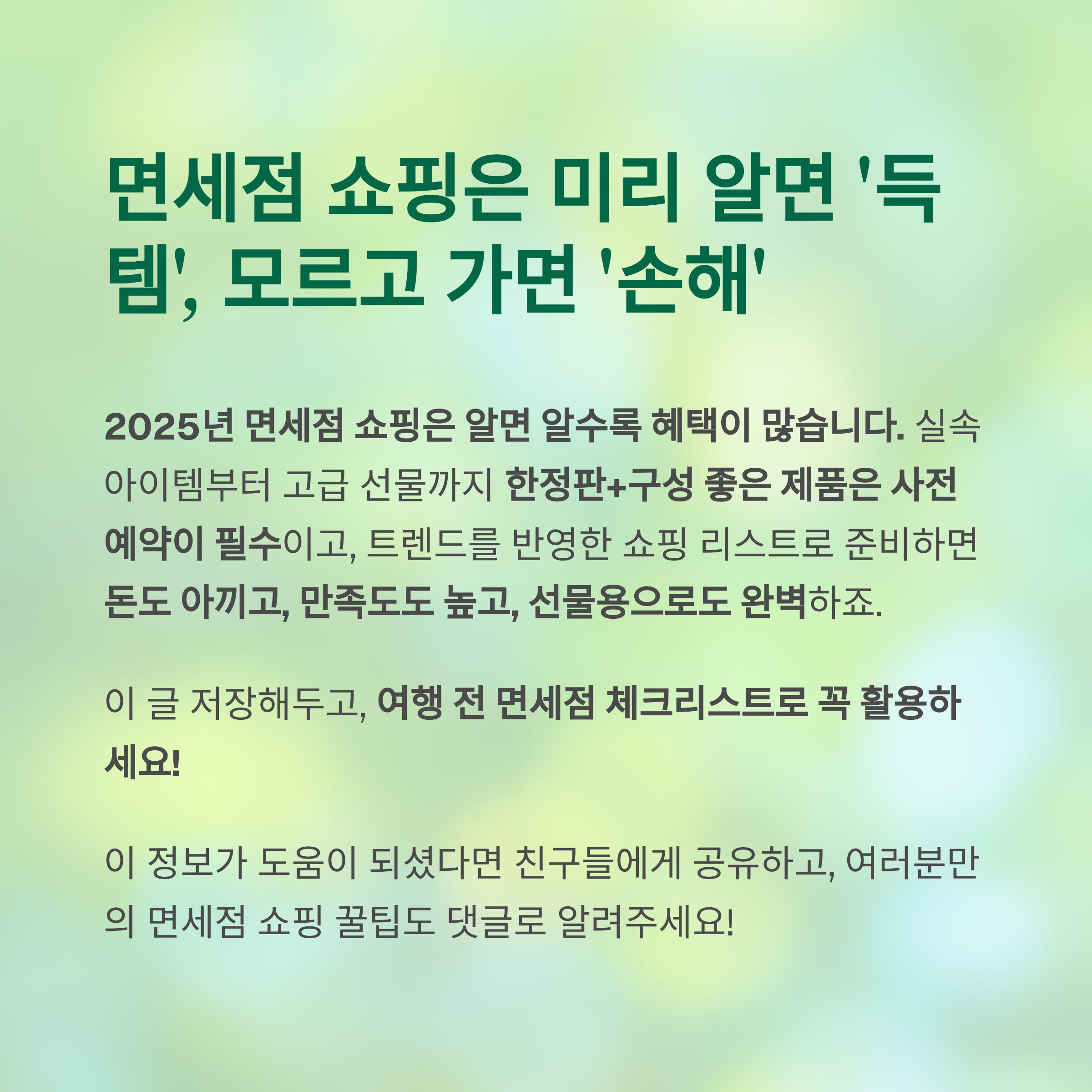 8. 면세 쇼핑 꿀팁 모음 (2025년 기준)