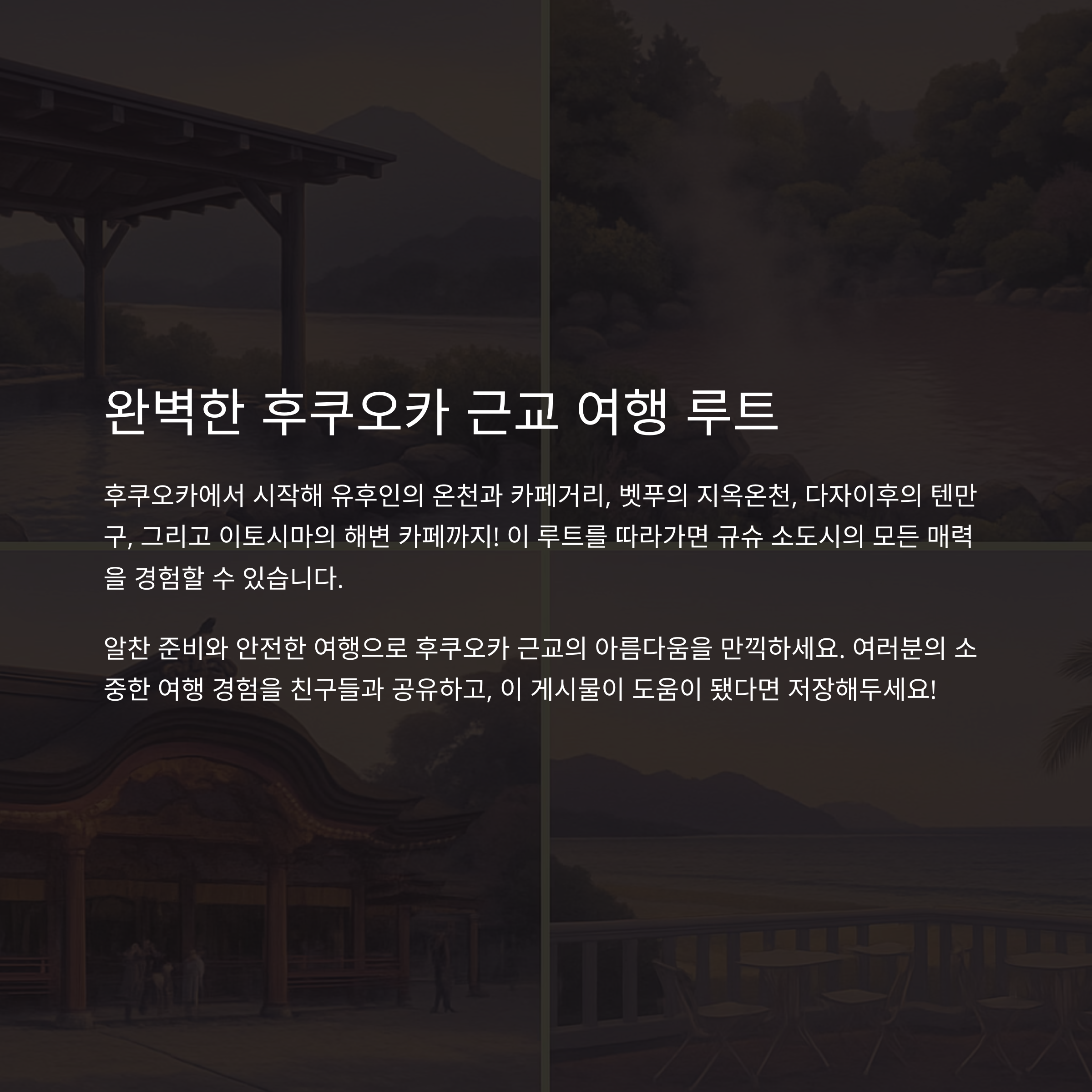 알찬 준비와 안전한 여행으로 후쿠오카 근교의 매력을 만끽하세요.