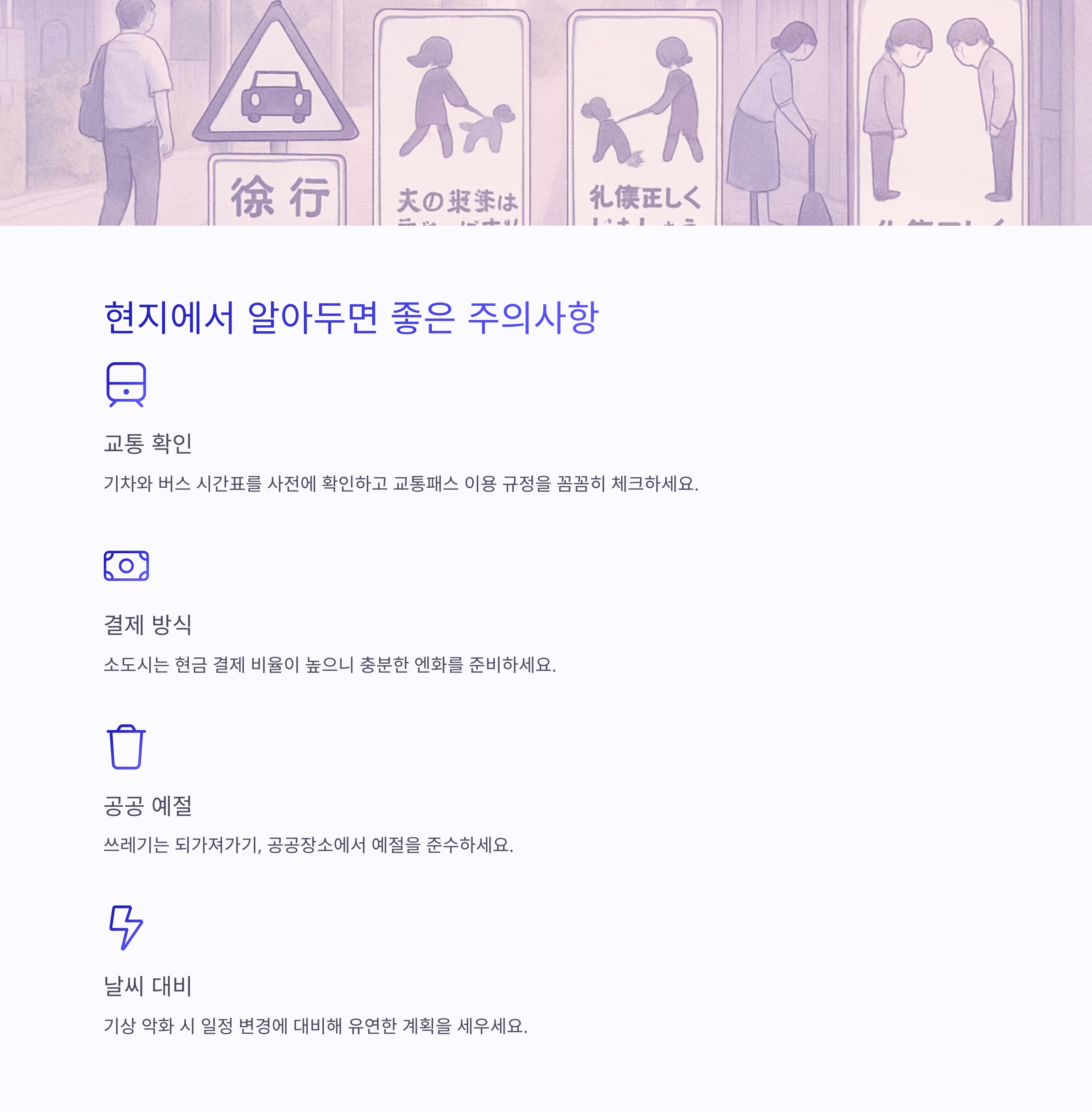 주의사항을 데이터 기반으로 정리했습니다. 일본 소도시 감성