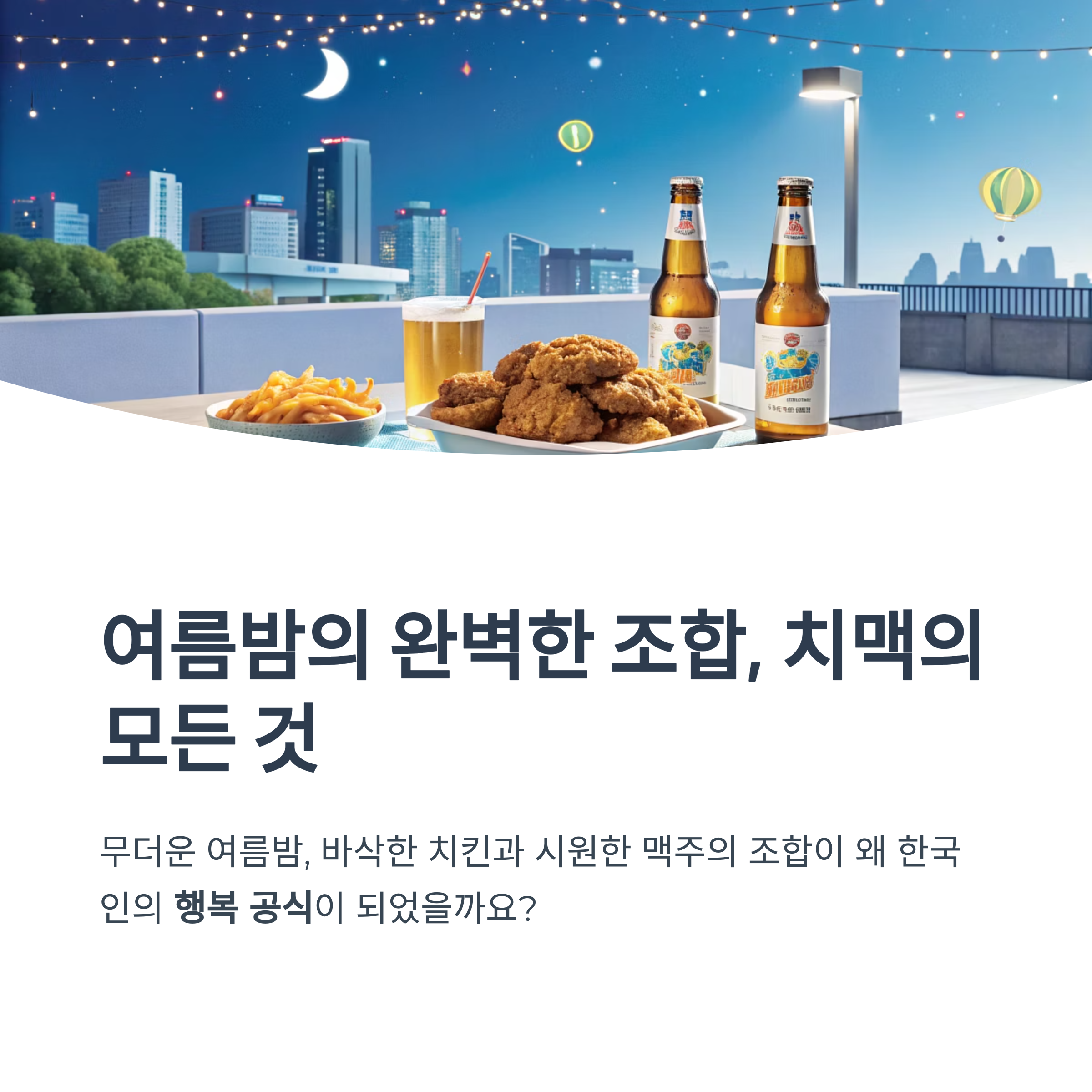 무더운 여름밤, 시원한 맥주 한 잔과 바삭한 치킨을 떠올리면 그야말로 한국인의 행복 공식이 아닐 수 없습니다. 치맥이라는 단어가 익숙한 우리에게 이 조합은 단순한 음식 이상, 문화이자 일상입니다. 특히 축구 경기 응원, 주말 야식, 회식 자리 등 다양한 사회적 장면에서 치맥은 빠질 수 없는 주인공이 되었죠. 이번 글에서는 치킨과 맥주의 환상적인 궁합을 유래와 문화, 시장 동향, 건강 영향, 소비 통계까지 다각도로 깊이 있게 분석해보았습니다. 건강하게 즐기는 팁과 함께 치맥의 매력과 주의할 점까지 꼼꼼히 확인해보세요.