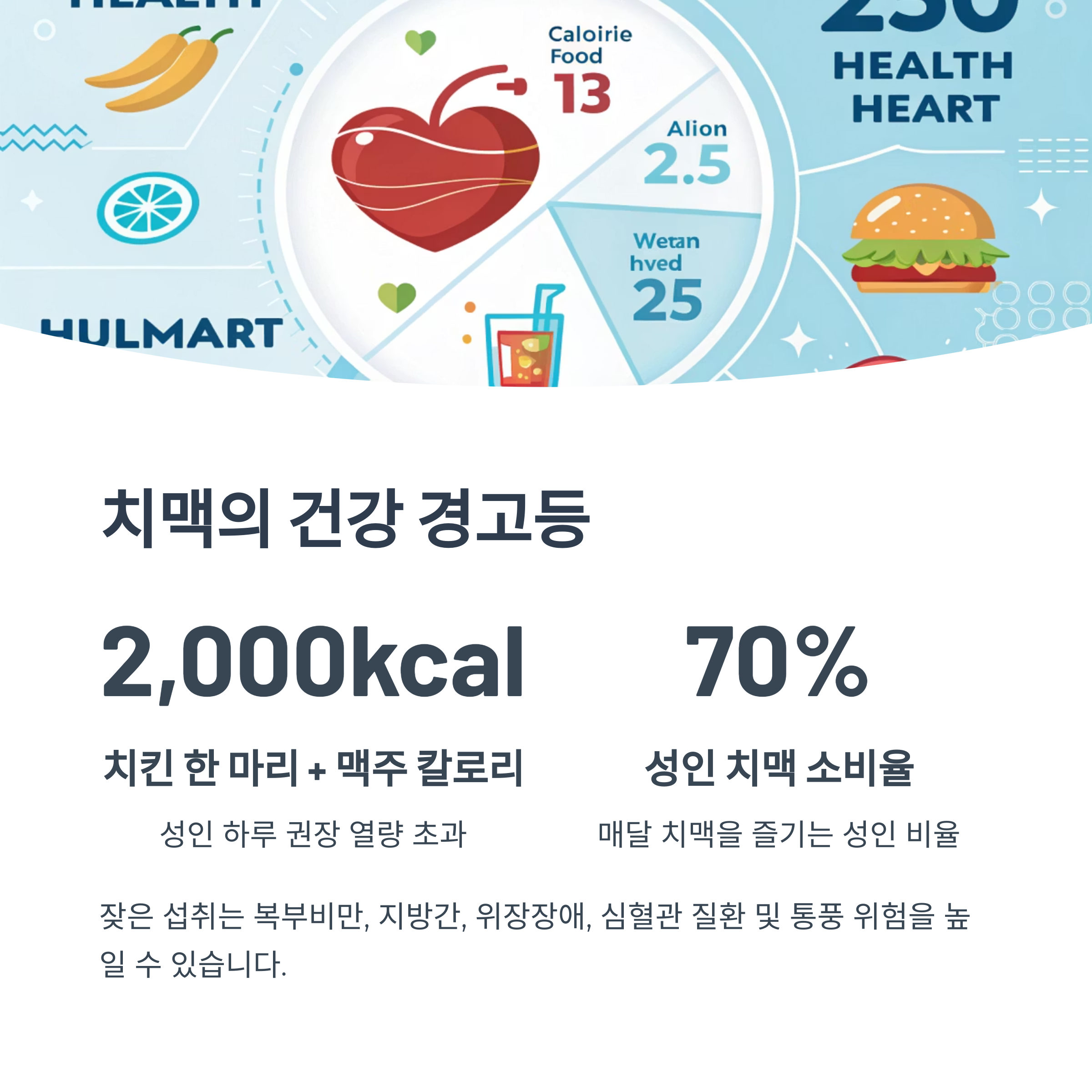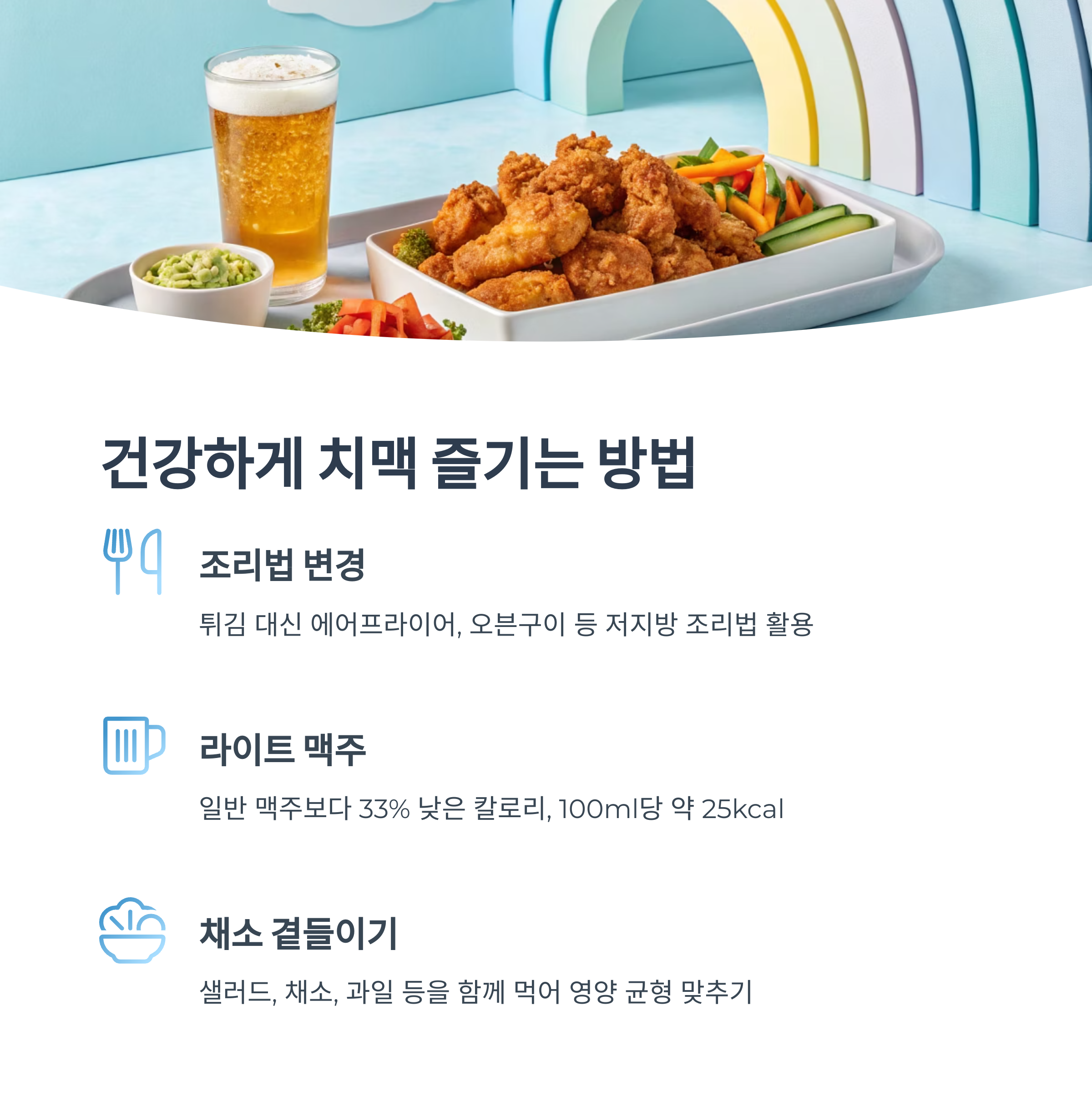 | 치맥 유래 | 칼로리 주의 | 건강한 대안 |