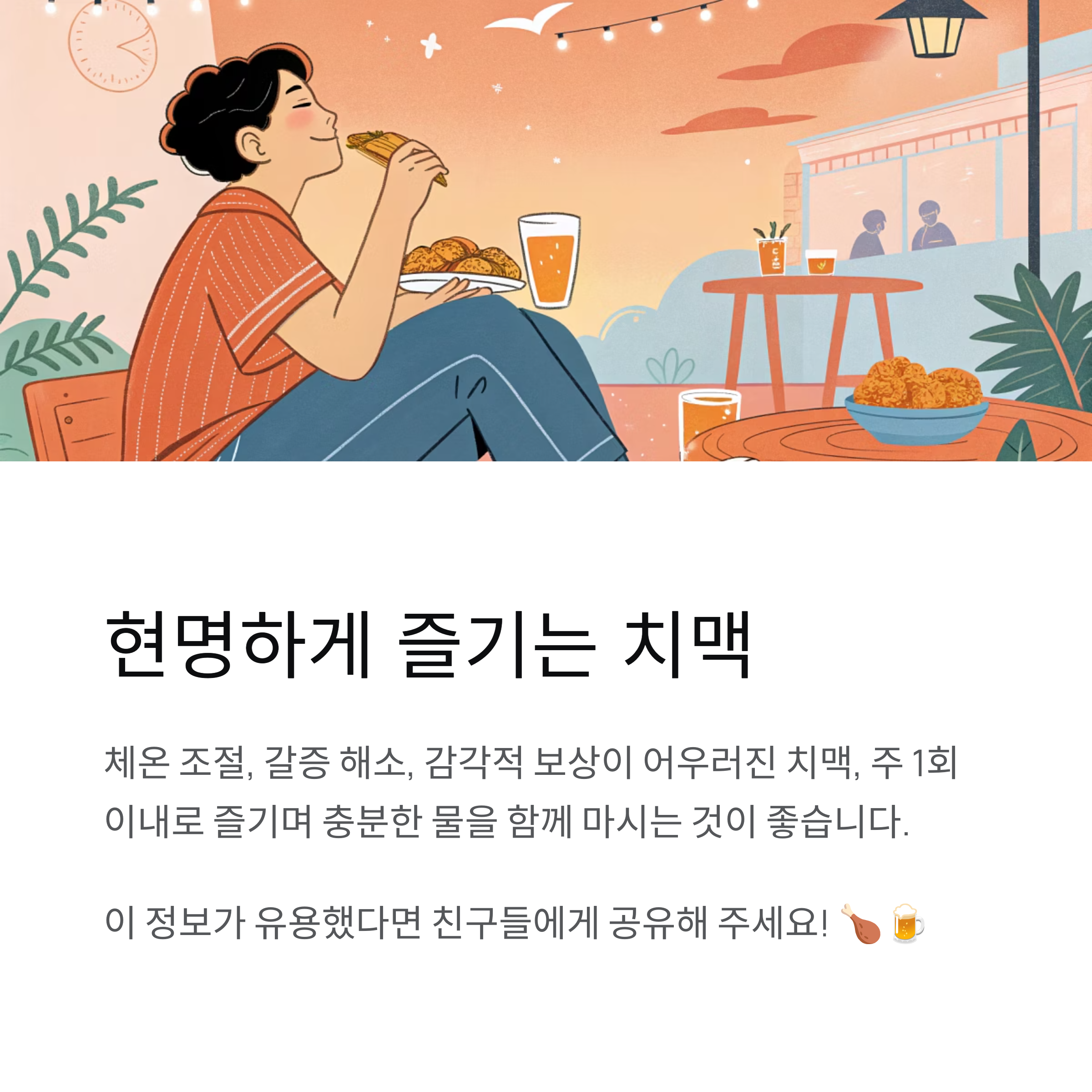 | 치맥의 인기 이유 | 무더위 속 갈증 해소와 감각적 보상이 함께 작용합니다 |